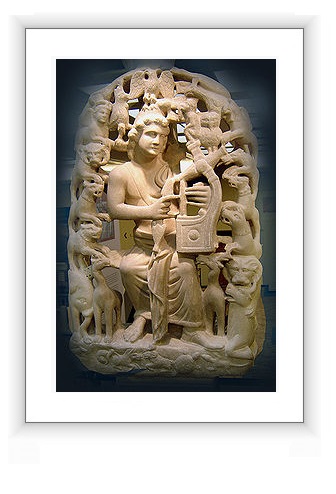 IMAGEM: Orfeu com a lira e cercado por feras (século IV. Museu Bizantino e Cristão, Atenas)